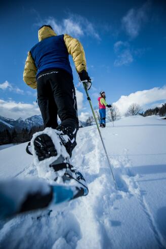 Eine lange Schneeschuhtour steht an, wer die gesamte Runde gehen möchte. Sie lässt sich aber auch problemlos abkürzen und ab der Neureuth den Rückweg antreten.