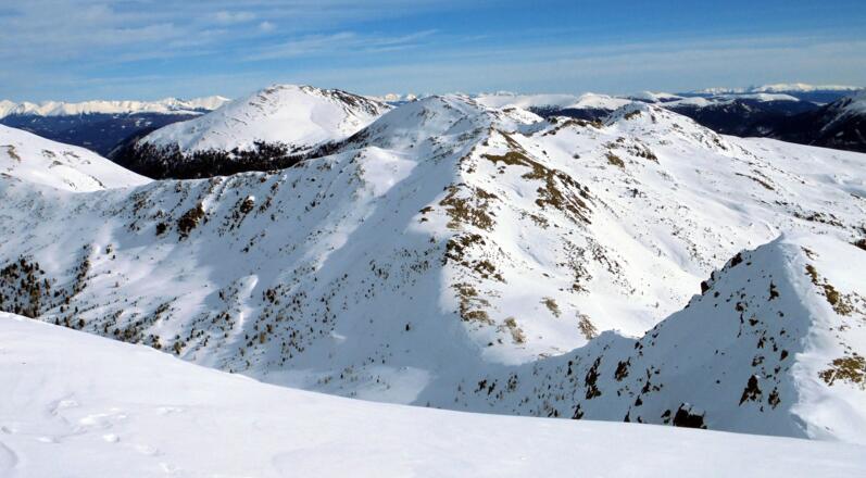 Insbesondere im Bereich der Pregratscharte und oberhalb der Winkleralm einige steile Hänge - Vorsicht !
