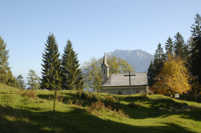 Die Wallfahrts- und Gnadenkapelle "Zur Schmerzhaften Mutter Gottes" ist bereits über 500 Jahre alt und steht auf 882 Metern Höhe auf dem Nuslberg nahe Oberaudorf. Die Kapelle kann man auf mehreren schönen Wanderwegen erreichen. Einer Legende zufolge erschien die Mutter Gottes einigen Kindern aus der Mühlau vor einem Gnadenbild im Mai 1516, als diese die weidenden Schafe vom Nuslberg in das Tal hinabtreiben wollten. In Verbindung mit dieser Erzählung wird immer die Sage vom Geist am Ramserer Stein genannt. Maria ist auch hier einst einem jungen Mann zur Hilfe gekommen, der am Ramserer Stein von einem großen schwarzen Hund verfolgt wurde und im steilen Gelände abstürzte. Aufgrund eines Gebets zu Maria wurde der Bursche schnell gefunden und wieder gesund. Noch heute zeugen viele Votivtafeln in der Kapelle von den wundersamen Heilgeschichten dieser Region und der Suche nach Trost und Zuversicht der Gläubigen.