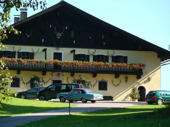 - Oben angekommen erwartet Sie ein herrlicher Ausblick. Wenn man sich nach links umsieht entdeckt man das imposante Jagdhaus der Familie Sachs. Die Radstrecke führt Sie allerdings nach rechts Richtung Wildgrub, immer mit Blick ins Kaisergebirge und an wunderschön gelegenen, alten Bauernhöfen vorbei.