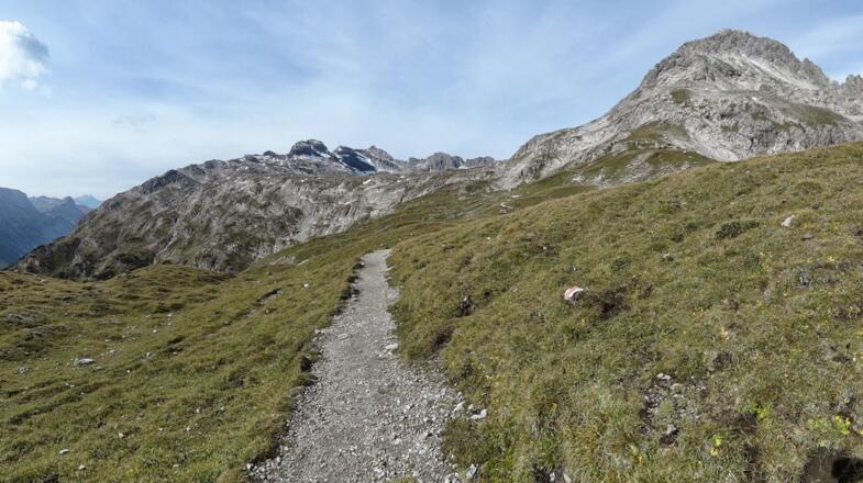 Von Lech aus geht es wirklich äußerst gemütlich in leichtem auf und ab über die Mautstraße bis zum unteren Älpele. Hier beginnt der Wanderweg, anfangs als Güterweg und anschließend als gut angelegter Wanderweg über Stock und Stein. Der Weg bis zur Göppinger Hütte ist sehr schön und auch konditionell nicht allzu fordernd, da es meist in mittlerer Steigung auf gutem Weg höher geht. Von der Göppinger Hütte aus folgt man erst einmal dem Weg Richtung Formarinsee und zur schwarzen Wand. Auf dem Plateau angekommen wird der Weg dann sehr schmal und fällt linksseitig steil ab. Hier ist Trittsicherheit und Schwindelfreiheit schon gefragt. Man verliert so einige Höhenmeter und kurz bevor es dann steil hinunter geht Richtung Formarinsee kommt die Scharte die sehr steil hinauf führt.