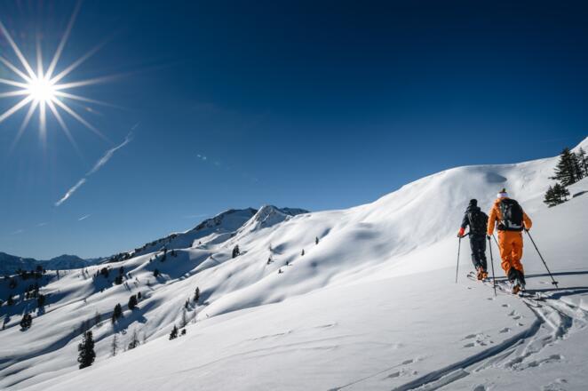 Nach der Abfahrt vom Penkkopf lohnt sich noch eine Einkehr in der Kleinarler Hütte. Von der Kaspressknödelsuppe über die Brettljause bis hin zum Kaiserschmarren – mit den beliebten Hüttenklassikern werden Tourenskigeher kulinarisch verwöhnt.