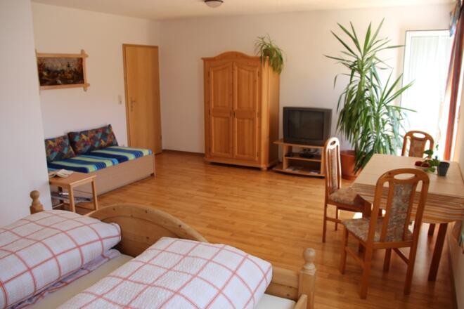 Unser Haus liegt in ruhiger und sonniger Lage, in der Nähe von Rad- und Wanderwegen. Die gemütliche 1-Raum Ferienwohnung (30qm) mit eigenem ebenerdigen Eingang bietet Platz für 1-3 Personen. Die Wohnung ist mit einem 1 Wohnschlafraum mit Küchenzeile, Essplatz, 1 Schlafsofa, Sat-TV, Du/WC und Terrasse ausgestattet. Zudem können Sie gerne bei uns das Frühstück für 9EUR pro Person und Tag dazubuchen. In der Umgebung gibt es zahlreiche Ausflugsmöglichkeiten. Regensburg liegt ca. 34 km entfernt, Ingolstadt erreichen Sie nach ca. 30 km. Vom Flughafen Nürnberg trennen Sie ca. 100 km. In der näheren Umgebung (500m) entfernt ist ein gemütlicher Biergarten, sowie ein Gasthof. Einkaufsmöglichkeiten, wie Netto, Norma, Edeka erreichen Sie in 6 km. Mo-Sa ist ein Brötchenservice durch Selbstabholung vor Ort möglich.