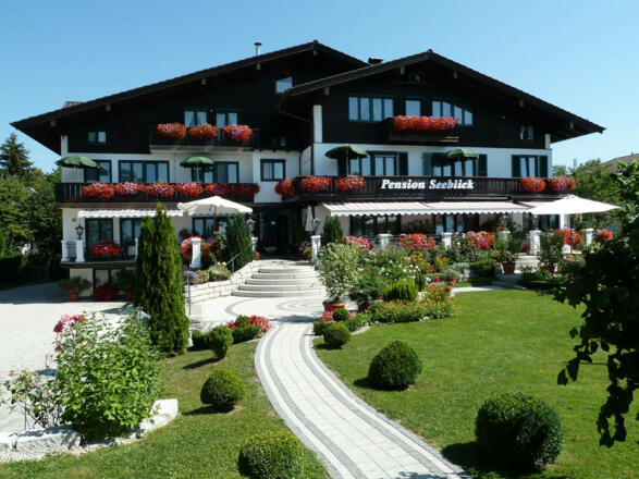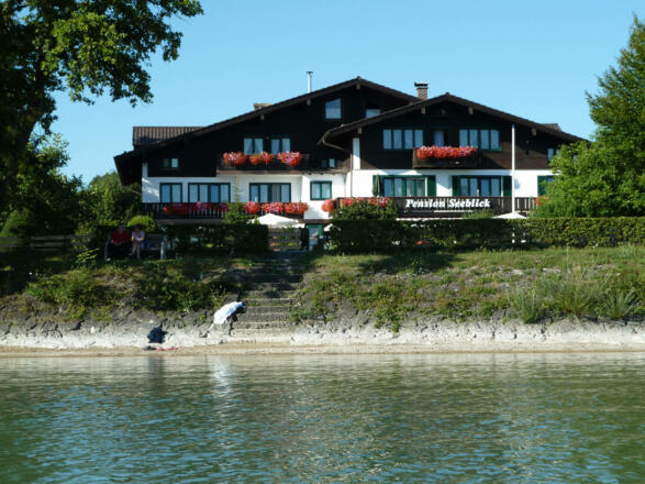 Unser Haus liegt direkt am Chiemsee und wir haben einen herrlichen Blick auf die bayerischen Alpen. Badegelegenheit und Uferpromenade nur 30 m von der Pension entfernt. Gemütlich eingerichtete Einzel-, Doppel- und Dreibettzimmer mit Dusche/WC, TV. Kinder von 6-12 Jahren im Zimmer der Eltern (Zustellbett) gegen Aufpreis möglich. Reichhaltiges Frühstücksbuffet, abends Brotzeiten, behaglicher Aufenthaltsraum, wunderschöne Sonnenterrasse, Liege- und Spielwiese direkt am Haus, PKW-Stellplätze, Garagen, Fahrradverleih, Fahrradgarage. Hausprospekt anfordern.