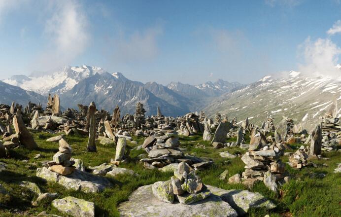 Als Einstieg überqueren wir gleich eine spektakuläre Hängebrücke, die uns etwas Mut abverlangt. Je näher wir dem Friesenberghaus kommen, umso mehr werden unsere akrobatischen Leistungen beim Plattenturnen gefordert. Wir erreichen im Zuge dieser eindrucksvollen Höhenwanderung eine Abzweigung (2.620 m), bei der unser Weg zwischen Felsbarrieren steil zum Friesenberghaus abfällt. Die idyllisch am Friesenbergsee gelegene Hütte (2.398 m) lädt zu einer Rast ein und lässt uns Kraft schöpfen für den Abstecher auf das Petersköpfl. Ein gut sichtbarer Weg führt uns in ausreichend anspruchsvoller Steigung auf den Sattel und schon kurze Zeit später auf den Gipfel. Dort angekommen erspäht man eine architektonische Meisterleitung, die sich schon über viele Jahrzehnte hinzieht. Was einen da genau erwartet, sollte jeder selbst herausfinden. Die überwältigende Aussicht besticht durch die Präsenz des Zillertaler Hauptkamms sowie der unzähligen Seen, die an diesem Standort unweigerlich ins Blickfeld rücken. Für den Abstieg wählen wir den gleichen Weg wie für den Aufstieg. Beim Friesenberghaus nehmen wir aber nun den direkten Weg (Nr. 32) für den Abstieg. Der Weg ist in diesem Bereich zugleich die Grenzlinie des Hochgebirgs-Naturpark Zillertaler Alpen. In einigen rassigen Kurven führt uns ein Steig durch alpine Rasen und Matten ins Lapenkar. Wir kommen an der Friesenbergalm vorbei und werden von einem romantischen Zirbenwald in Empfang genommen, der uns bis zu unserem Ausgangspunkt begleitet.
