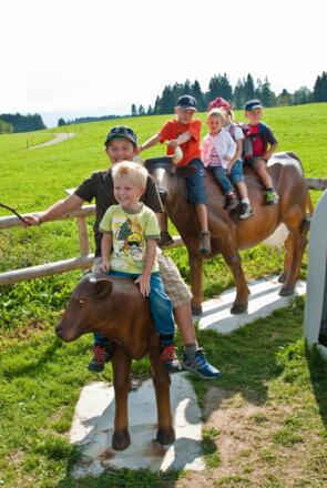Auf dem Milchweg werden an zehn Stationen alle Bestandteile einer erfolgreichen Milchwirtschaft thematisiert. Neben Milcherzeugnissen wird die Futterversorgung, die Aufzucht vom Kalb zum Rind und die Arbeiten des Landwirtes über das Jahr behandelt. Zusätzlich zu Informationen und Erläuterungen gibt es spannende Erlebnisse. Gleichgewicht ist am Waldspielplatz gefordert. Ein Riesenmemo oder ein Quiz regen die Köpfe der kleinen Besucher an. Musikalisch wird es beim Kuh-Glocken-Spiel. Auf der Schönegger Käse-Alm ist Fingerspitzengefühl nötig, wenn die geduldige Plastikkuh gemolken werden soll. Nach den vielen Informationen rund um Milch, Käse und Co. kann man sich auf der Schönegger Käse-Alm mit einem Glas Milch und vielen Käsespezialitäten stärken.