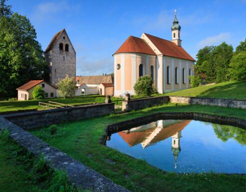 Die Pfarrkirche St. Johannes Baptist, ein Bau von Franz Xaver Schmuzer von 1758, ist sehenswert wegen seines glänzenden Stucks von Tassilo Zöpf und der Fresken des "Lechhansls" Joh. Baptist Baader.