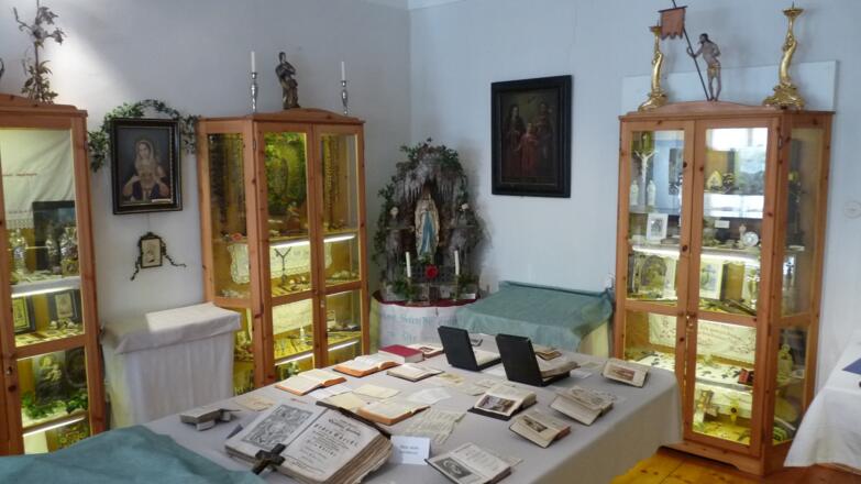 Von besonderer Bedeutung sind die in den Sammlungen vorhandenen Ablassbriefe, besitzt doch St. Georgen im Attergau den ältesten Ablassbrief Oberösterreichs aus dem Jahre 1299. Religiöse Bücher, alte Drucke, liturgische Gewänder und Geräte sowie die Darstellung der Geschichte der Pfarre St. Georgen runden diesen Themenbereich ab. In einer Fülle von Objekten widmet sich das Museum den verschiedenen Ausdrucksformen der Volksfrömmigkeit. Wallfahrtsandenken, Rosenkränze, Kreuze, Wachsobjekte und Klosterarbeiten zeugen von der Vielfalt christlich-religiösen Glaubens von einst und jetzt.