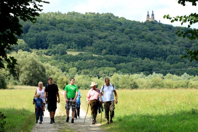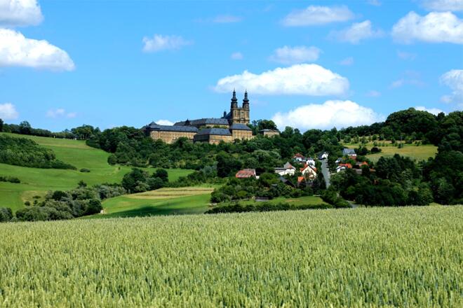 Die knapp 18 Kilometer lange Wanderreise von Untermerzbach nach Vierzehnheiligen führt durch das wunderschöne Itztal. Vorbei am Schloss geht es auf die Reise. Vor der Ankunft an der schönen Basilika passiert man Bad Staffelstein.