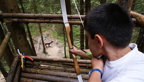 Mit einem einfachen Bogen ohne Zielvorrichtung und neuestem Material schießen Sie auf naturgetreue Nachbildungen von Wildtieren.