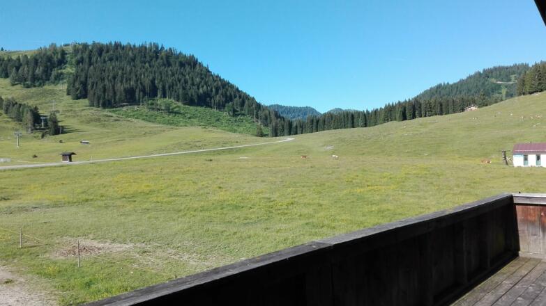 Eine riesige Terrasse lädt ein zum in der Sonne liegen. Der Ausblick ist dabei in Richtung Braunedl bzw. Gschlössl gerichtet.