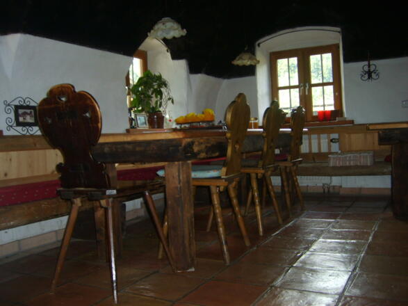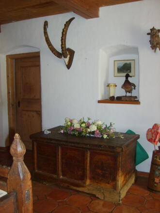Geburtshaus des "Müllner-Peter von Sachrang" im Ortsteil Aschach, biologisch bewirtschafteter historischer Bauernhof in einer der schönsten Lagen von Sachrang mit Blick zum Kaisergebirge. Unser Frühstücksraum ist eine urige originale "Rauchkuchl". Ca 100 m zur Gaststätte Müllner-Alm, direkt am Fuß- und Radweg, eigener Skilift am Haus.