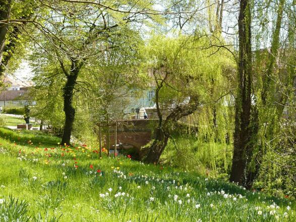 Entlang der Stadtmauer im Verlauf des Bahndammes der ehemaligen Ludwig-Süd-Nord-Bahn entstand im 19. Jh. die Donauwörther Promenade. Alter Baumbestand und eine vielfältige Blumenpracht säumen den