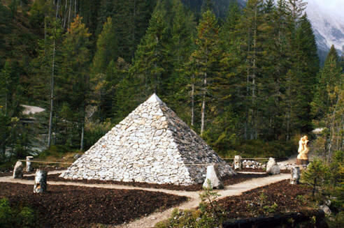 Die Steinpyramide mit der Optik einer Tiroler Lesesteinmauer. An diesem Punkt, wo der Salzbach in die Ache mündet, ist sie ein Symbol für Toleranz und Integration