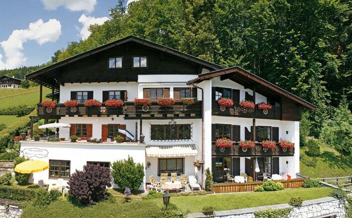 Haus am Berg Unser Haus liegt in absolut ruhiger und sonniger Südhanglage am historischen Wanderweg über Berchtesgaden mit herrlichem Blick auf den Watzmann und das gesamte Panorama (Sackgasse). 10 Gehminuten zur Ortsmitte und zum Bahnhof. Gemütlich eingerichtete Ferienwohnungen mit großem Südbalkon oder Terrasse - Kabel-TV, Flachbildschirm, kostenloses W-LAN. Wohnung 85 m² mit großzügigem Wohn-Ess-Bereich (Geschirsspüler), Flachbildschirm, DVD-Player, Hifi-Anlage, 2 Schlafzimmer mit TV und sehr großem Süd-West-Balkon. Wohnung 120 m² mit Wohnzimmer (großer Flachbildschirm), DVD-Player, Hifi-Anlage, Küche-Esszimmer (Geschirrspüler), 2 Schlafzimmer mit TV, 2 große Südbalkone. Gut ausgestattete Küchen. In der persönlichen Atmosphäre werden Sie sich sicher gleich wohlfühlen. Direkt am Haus Ausgangspunkt für viele schöne Wanderungen.