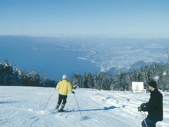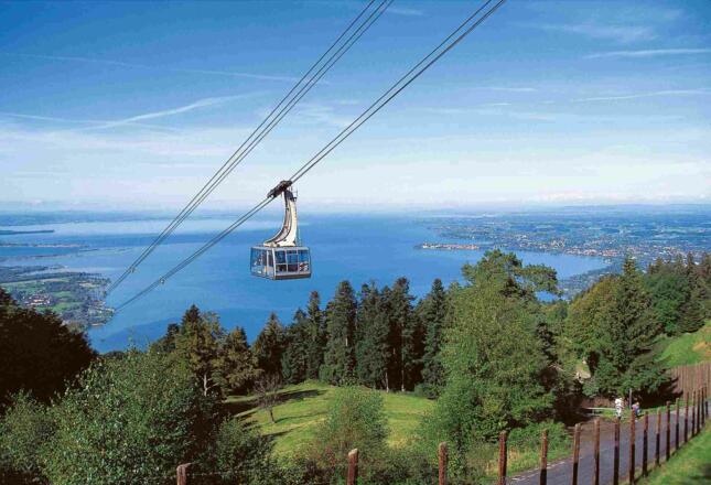 Vom Schloss Montfort durch den historischen Ortskern Langenargens auf dem Bodensee-Radweg über Kressbronn, Nonnenhorn und Wasserburg nach Lindau. Unbedingt den Abstecher über die Lindauer Insel machen (Radweg auf Bahndamm und Seebrücke). Dem Bodenseeradweg in Richtung Bregenz folgen und am Bahnhof Lochau-Hörbranz abzweigen nach Lochau Ortsmitte und in die Pfänderstraße abbiegen. Der Asphaltstraße mäßig bis steil ansteigend bis zur Bergstation der Pfänderbahn folgen. Am Pfänder gibt es einen Alpenwildpark und zahlreiche Wandermöglichkeiten. Für die Abfahrt bieten sich verschiedene Alternativen an. Wir empfehlen die Route über Eichenberg. Sie ist wie der Anstieg auch ohne Mountain Bike machbar, gute Bremsen werden aber dringend benötigt. Auf einer gemütlichen und wenig befahrenen Höhenstraße vorbei an Gomm’s Raststüble in Jungholz. Am Hochberg vorbei Richtung Lutzenreute (Tipp: Jausenstation und Metzgerei Fesslerhof, www.fesslerhof.com), dann auf die Autostraße Richtung Eichenberg abzweigen und abwärts nach Lochau. Auf dem Bodensee-Radweg zurück nach Langenargen.