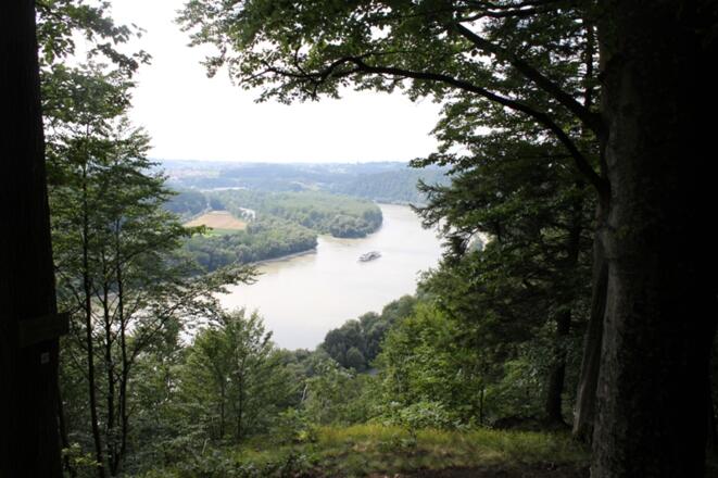 Zwei Gegensätze gibt es hier zu entdecken. Charakteristisch für das Donautal sind die steilen bewaldeten Hänge, die für ihren Artenreichtum bekannt sind. Auf der anderen Seite der Donau dagegen geht es etwas flacher zu. Im Blickfeld liegt die Soldatenau, die einerseits als Wasserversorgungsreservoir für die Stadt Passau dient und andererseits einen seltenen Lebensraum für das Donautal darstellt. In dem tief eingegrabenen Engtal gibt es nur wenige großflächige Auenstandorte. Darüber hinaus wurde der weitgehend unbeeinflusste Flußverlauf durch zahlreiche Flussregulierungen grundlegend verändert. Viele Renaturierungsmaßnahmen zielen darauf ab, noch vorhandene Standorte zu erhalten oder neue zu schaffen.
