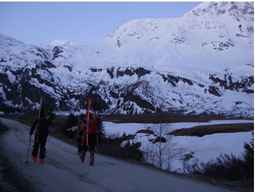 Rechtzeitiger Aufbruch bei der Abfahrt über das Kleinfleißkees zum Zirmsee (2.460 m).