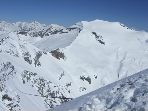 Grandiose, fast endlos scheinende Abfahrt mit über 1.700 Metern Höhendifferenz vom Hocharn über einen breiten Gletscher nach Kolm Saigurn.
