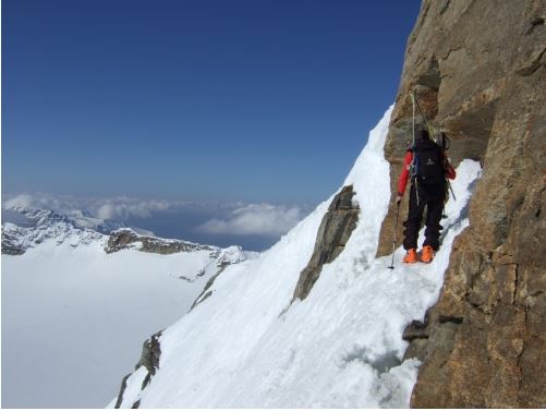 Im Frühwinter bzw. ab Frühsommer zusätzlich Hüftgurt und Seil für die Gletscherbegehung!