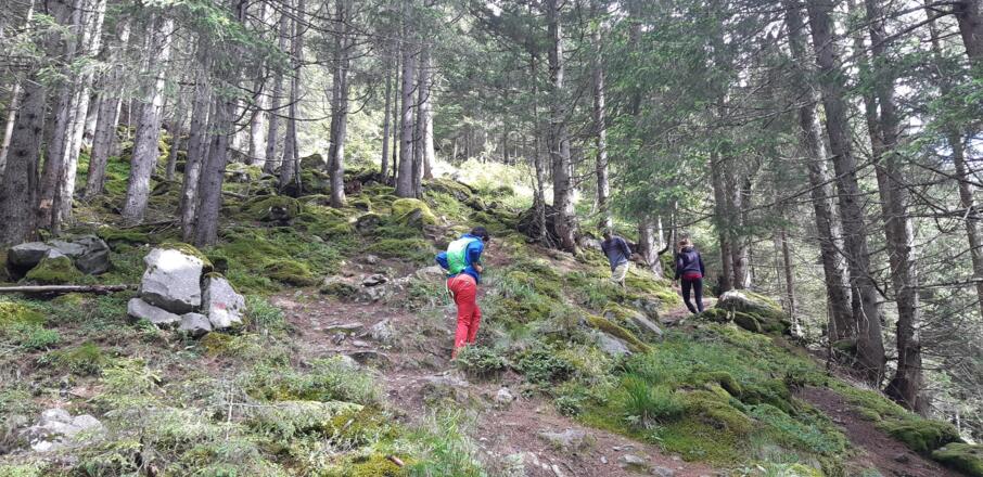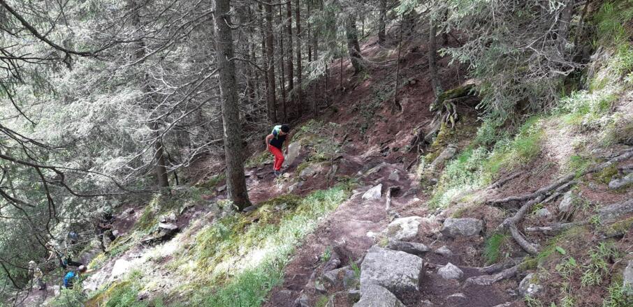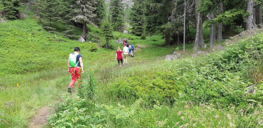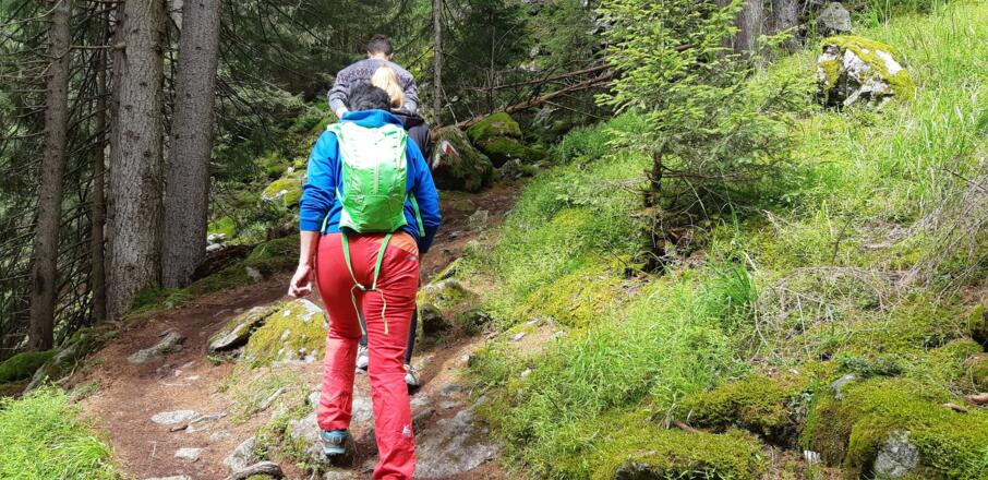Vom Restaurant Waldcafe beginnt der markierte, in vielen kleinen Serpentinen steil aufwärts führende Steig, welcher immer wieder den Forstweg  "Bei der Forche" quert. Hier befindet sich die urige Falbesoner Ochsenalm, mit Blick auf die Neue Regensburger Hütte. Mit dem Ziel vor Augen, führt der Steig weiter über eine letzte Steilstufe zur Neuen Regensburger Hütte.