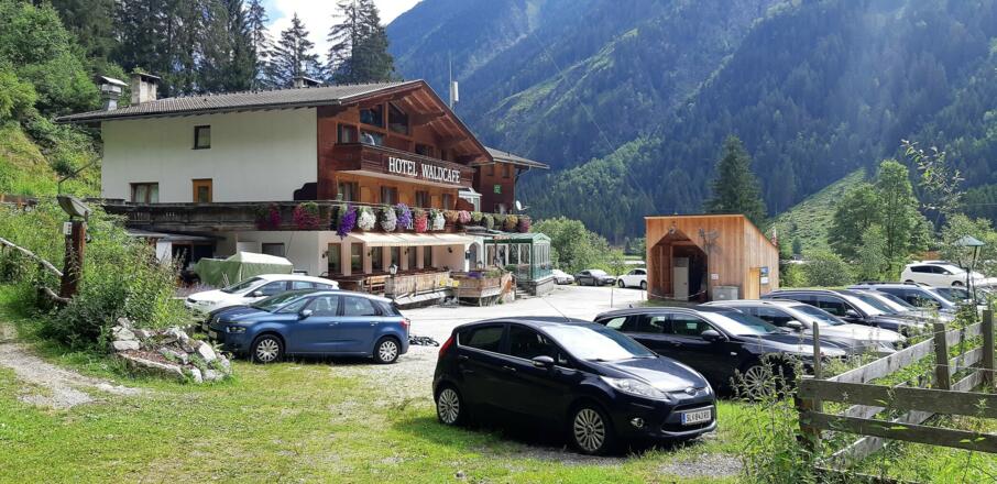 Auf dem Weg vor dem Waldcafe gibt es die Möglichkeit in einem Wiesenstück kostenfrei zu parken.