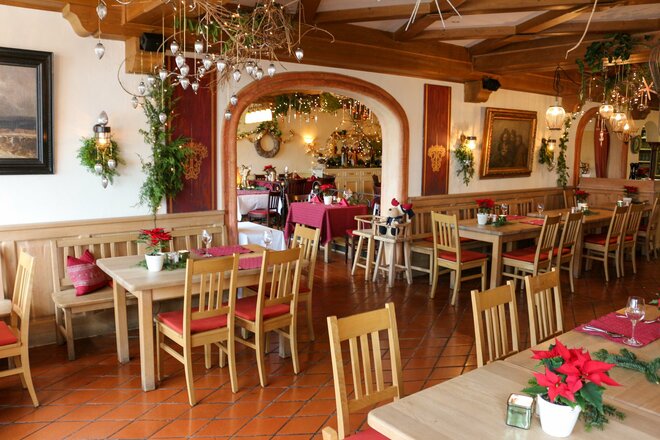 Das Restaurant verfügt über zwei voneinander trennbare Bereiche, einer mit 60 Plätzen und Blick über die Terrasse und einer mit 50 Plätzen und separat angeschlossener Terrasse.