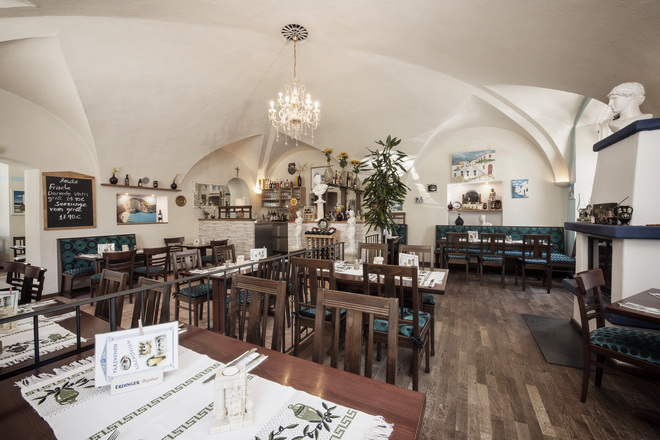 In den schönen Räumlichkeiten des alten "Martini-Hofs" werden unter der Gewölbedecke griechische und mediterrane Spezialitäten serviert. Ob Klassiker wie Gyros, griechischer Bauernsalat, Suvlaki, Kalamari, Lammkoteletts oder im Sommer auch frisch vom großen Grill tolle Speisen im Biergarten genießen.