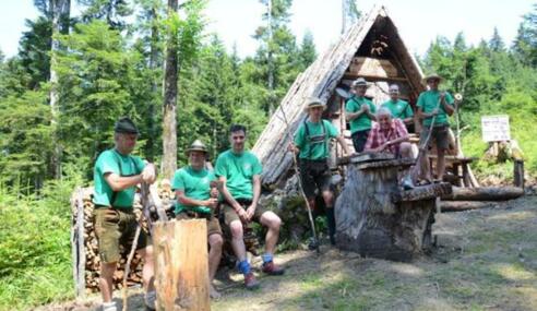 Holzknechtselden - Rindenhütten waren einfache Behausungen aus Holz. Sie dienten in früherer Zeit Holzknechten als Unterschlupf, wenn sie nach der Arbeit im Wald nicht nach Hause zurückkehrten, weil sich der Weg nicht auszahlte.
