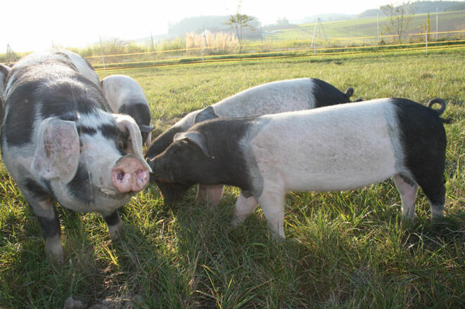 Das Bunte Bentheimer Schwein stammt aus dem hohen Norden Deutschlands und zählt zu den ältesten Rassen hierzulande. Diese Rasse zeichnet sich durch seine sehr gute Fleisch-Qualität aus. Das Fleisch ist sehr stark marmoriert, was es dadurch sehr zart und geschmackvoll macht. Die Schwäbisch Hällischen Schweine sind ebenfalls eine robuste und stressresistente alte Rasse. Die Mohrenköpfle, wie Sie aufgrund ihrer charakteristischen Färbung genannt werden, haben ein zartes, saftiges Fleisch mit einer natürlichen Speckauflage und einem unvergleichlich guten Geschmack.
