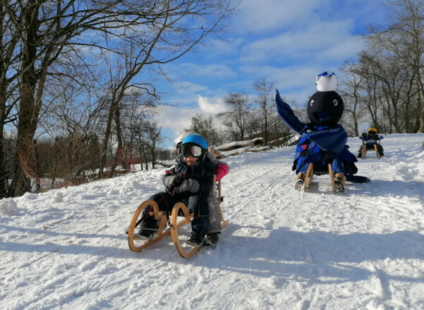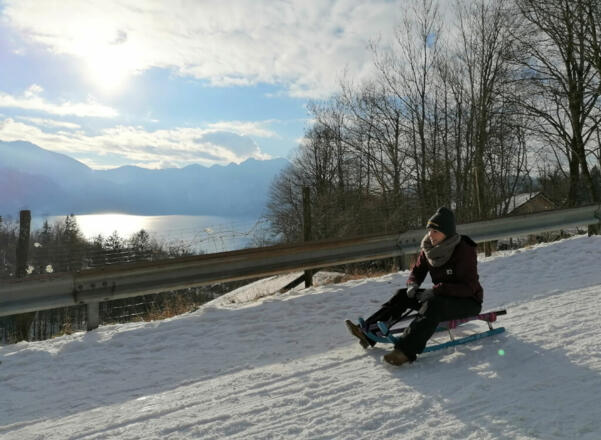 Sich vom Winter verzaubern lassen: Frische Luft tanken, gemeinsam fröhlich sein und einfach mit der Seele baumeln - die Rodelbahn in Steinbach am Attersee ist die beste Gelegenheit dafür.