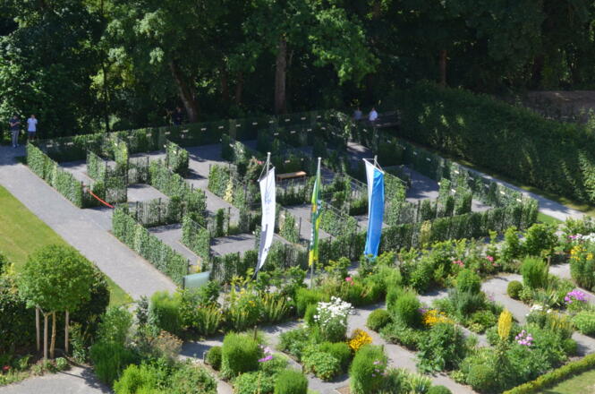 In einem Teil des unteren Terrassengartens ist der neue Meditationsgarten mit dem Efeu-Labyrinth entstanden. Dieser Labyrinth-Garten soll die klösterliche Spiritualität "Auf dem Weg zur Mitte - zu Gott" symbolisch und gestalterisch hervorheben. Weitere Informationen Pressemitteilung