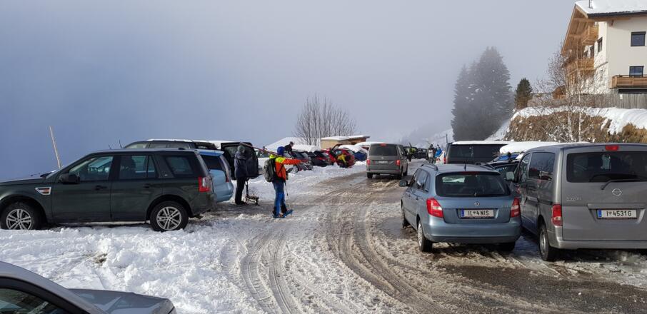 Gebührenpflichtiger Parkplatz bei der Jausenstation Innerst; Tagesticket € 3,- (2019).