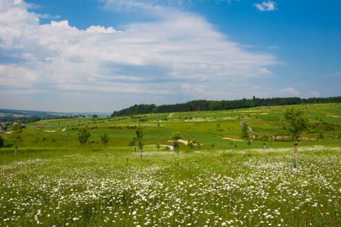 Am Bella Vista Golfpark entlang, vorbei an den Hügelgräbern, erreichen wir den „Gigler“. Der prächtige Vierseithof liegt traumhaft schön und bietet einen herrlichen Ausblick über die Golfanlagen und die Rottauen weit ins Rottal hinein. Bei guter Witterung kann man beispielsweise die geschichtsträchtige Klosterkirche von Asbach sehen.