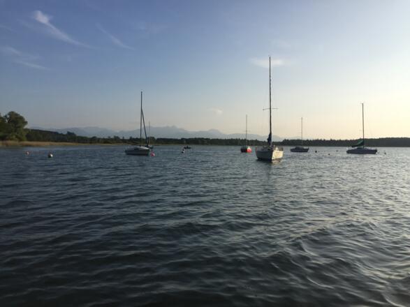 Eine 20 km lange, aber gemütliche Radtour, die jederzeit zu einer kleinen Erfrischung im kühlen Nass einlädt. Entspannung zwischendurch ist garantiert auf einem der vielen Bankerl mit einem grandiosen Ausblick auf die atemberaubende Bergwelt und den idyllischen Simssee. Stärken kann man sich mit guter bayerischer Küche und frischen Fisch bei den Seegaststätten und Kiosken entlang des Ufers oder in den beschaulichen Dörfern der Voralpenlandschaft. Der Simssee umfasst knapp 7 Quadratkilometer und ist damit der weitflächigste See im Rosenheimer Landkreis, auch kleiner Bruder des Chiemsees genannt.