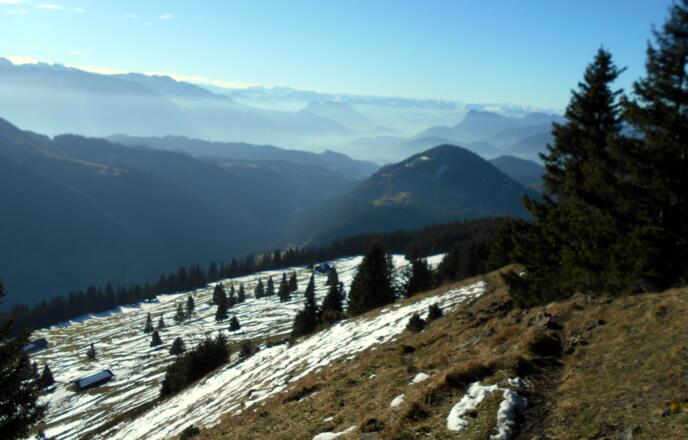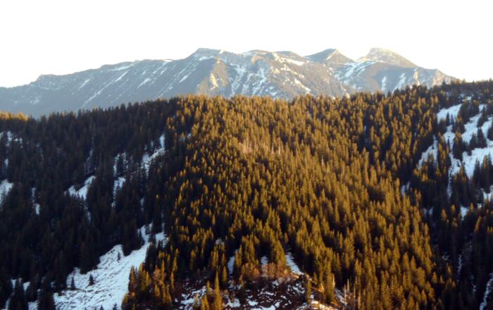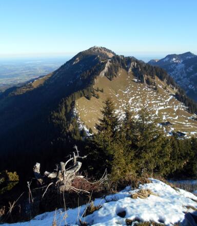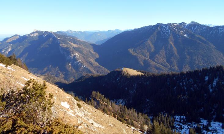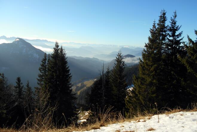 Die Rücken von Hochries über Karkopf zum Feichteck auf der einen und Klausenberg zum Predigtstuhl auf der anderen Seite liegen sich genau gegenüber - so ergibt sich eine aussichtsreiche Rundtour mit vielen Gipfelmöglichkeiten
