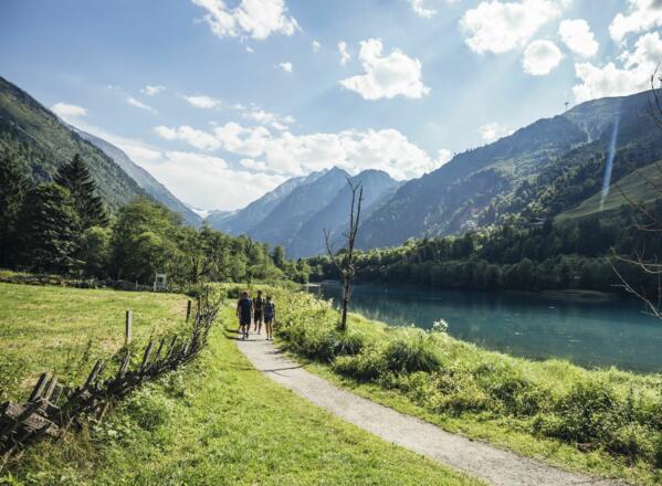 Vom Krafthaus Hauptstufe (Krafhausstraße) führt der Weg über den Achensteig auf die linke Seite. Entlang der Ache zum Eingang der Sigmund Thun-Klamm. Der Holzsteig durch die Sigmund Thun-Klamm ist nur im Sommer geöffnet. (Eintritt!) In leicht ansteigenden Serpentinen erreicht man die Straße und weiter über die Belinzky-Brücke. Man bleibt auf der rechten Seite der Klamm, kommt am Gebäude der Eigenbedarfsanlage vorbei und wandert bis zum Ende des Sees. Hier befindet sich ein Kiosk mit WC-Anlage, Spielplatz und Fitness Parcour. Nun überquert man den Steg und gelangt auf die linke Seite des Sees. Der Weg führt wieder talauswärts, vorbei an naturkundlichen Schautafeln, an Feuchtbiotopen, hin zu einer Gletschermühle. Nun geht es hinunter in die Klamm, hier wird die Ache wieder überquert. Auf der rechten Seite erreicht man nach ca. 100m die Straße, auf der man wieder den Ausgangspunkt erreicht.