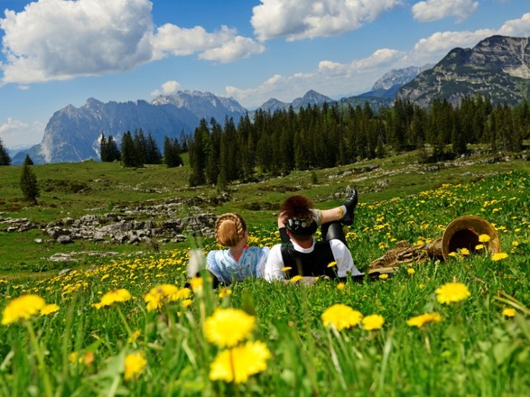 Von der Hemmersuppenalm hat man einen grandiosen Blick zum "Bayerischen Meer" sowie auf die umliegenden Berge.Wunderschön ist auch im Frühling die Alpenflora. Im Mai blüht der Enzian und im Juni der Almrausch.