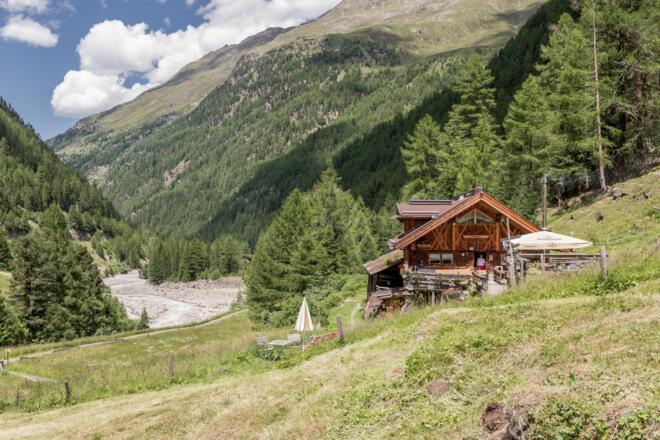 Das Sahnestüberl auf 1.650 m liegt zwischen Zwieselstein und Obergurgl. Die urige, altbäuerliche Almhütte ist der ideale Treffpunkt um Tiroler Spezialitäten zu genießen.
