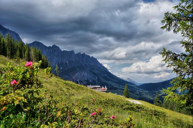 Im weiteren Tourverlauf gelangen Sie von der schroffen Formen des Feslgiganten Hochkönig zu den sanften Grasbergen der Region.