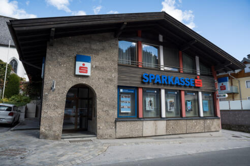 Salzburger Sparkasse mit Bankomaten direkt neben Mesnerhaus inmitten von Mühlbach am Hochkönig