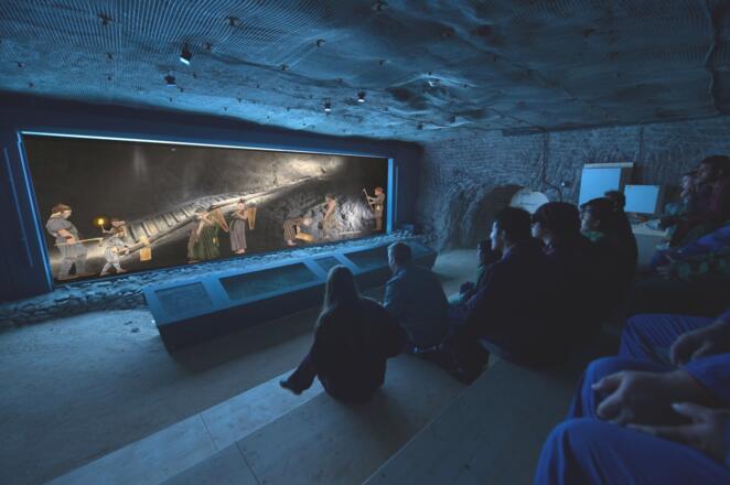Im Bronzezeit-Kino treffen Sie auf einige großartige Stars. Zum Beispiel die älteste Holzstiege Europas. Ein absolutes Highlight, das dem Kino eine perfekte Bühne bietet. Oder auf Udlo und seine Sippe. Um ihren harten Alltag in der Bronzezeit dreht sich auch der Film, den Sie in 4K-Qualität mehr als 400 Meter unter Tage sehen werden. Eine kleine Grubenbahn bringt Sie wieder ober Tage.