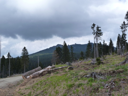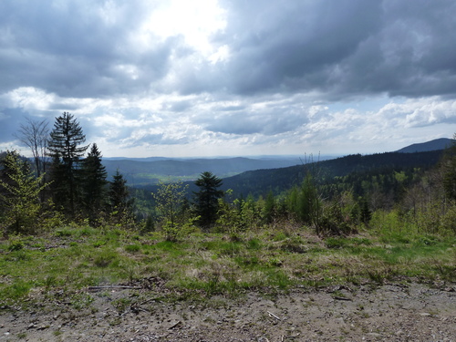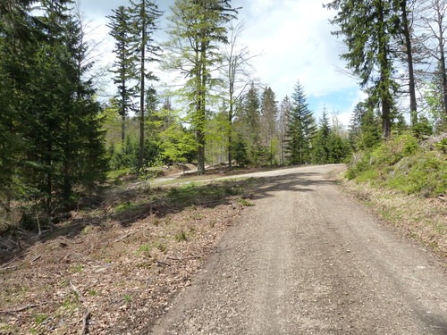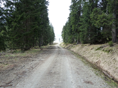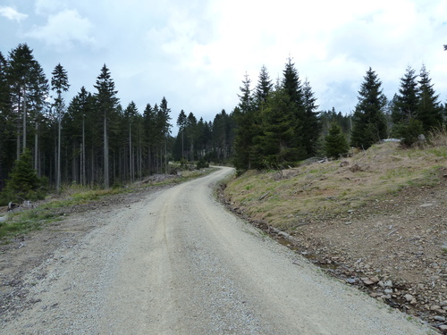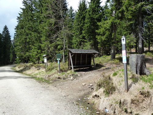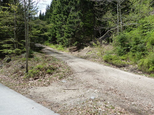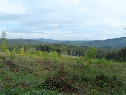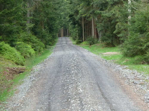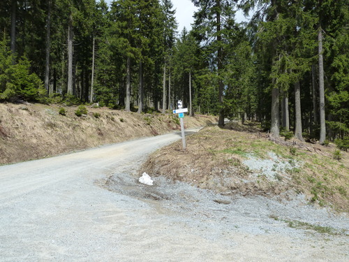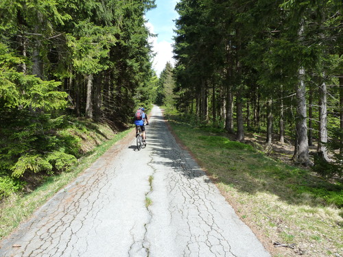 Der lange, stetige Anstieg Richtung Hennenkobel verläuft überwiegend im Wald. An der Wegespinne (Anstieg zum Hennenkobel) fährt man links auf einer schmalen Teerstraße bergwärts Richtung Schachtenbach. Links abbiegend auf eine Forststraße, umfährt man die Rote Höhe (1.048 m) und erreicht das Aktivzentrum Bodenmais am Bretterschachten (1.120 m). Die Arberseestraße überqueren und auf der Forststraße weiter aufwärts zur Auerhahnstraße fahren. Dieser Streckenabschnitt bietet eine herrliche Aussicht über den Bayerischen Wald sowie zum Großen und Kleinen Arber. Die Wanderwege zum Großen und Kleinen Arber kreuzen und man erreicht den höchsten Punkt der Tour (1.257 m). Von nun an geht es bergab über Luchsplatzl und Fuchsenreiben zum Tausender (1.000 m).