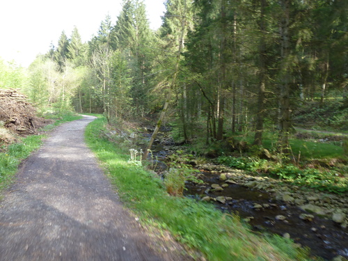 Lange Tour für konditionsstarke Tourenbiker. Tourenbeginn ist der Parkplatz am Sportplatz, Nordic-Walking Streckentafel. Vom Parkplatz aus geht es in südlicher Richtung über die Staatsstraße nach Miesleuthen. Zwischen den Häusern hindurch passiert man ein altes Backhaus. Die ersten Meter sind etwas steiler, aber gut zu fahren. Man überquert den Hotelpark Riederin, um nun kurz darauf weiter dem Trail, von nun an etwas flacher, zu folgen. Der Trail wird nun zur Forststraße, ehe man vor dem Ortsteil Böhmhof die Staatstraße mittels einer Unterführung quert. Es folgen eine kurze Abfahrt und ein ca. 2 km langes Flachstück, die Walzenstraße.