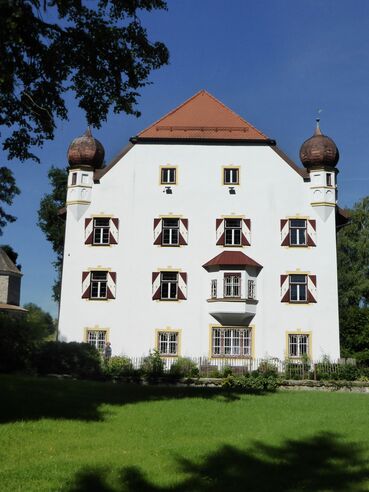 Das Renaissance-Schloss ist noch so erhalten, wie es die Auer umgestaltet haben. Der drei- bis viergeschossige viereckige Bau ist breit angelegt mit vier Ecktürmchen, die Zwiebelhauben tragen. Der Eingang mit seinem Rundportal liegt auf der Südseite. Ein umlaufender Wassergraben, dessen Wasser von einer Quelle gespeist wird, umschließt das Gebäude. Bis ins 17. Jahrhundert war das Wasserschloss nur über eine Zugbrücke zu erreichen.