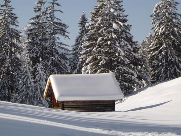 Entlang verschneiter Almwiesen - eine Genuss-Schneeschuhwanderung, die Einsteigern besonders viel Spaß macht.