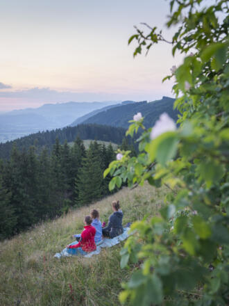 Eine schöne Tour auch für Familien über Wiesen und vorbei an Almen zum Gipfel