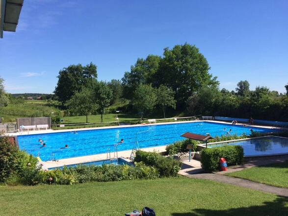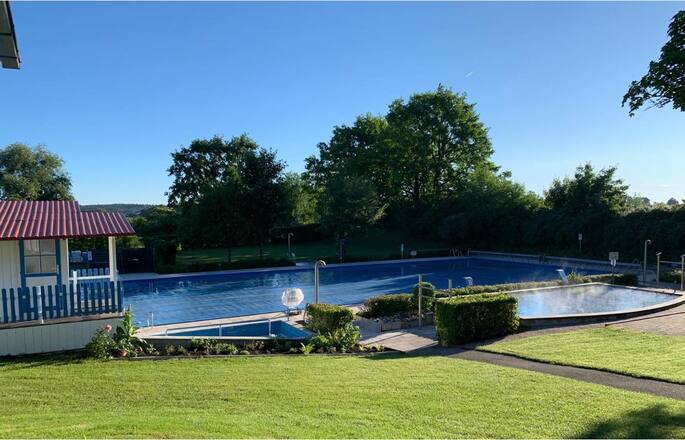 | Ein beheiztes Freibad (min. 24° C) mit Kinderbecken, Planschbecken, Liegewiesen, Duschmöglichkeiten (warm) |