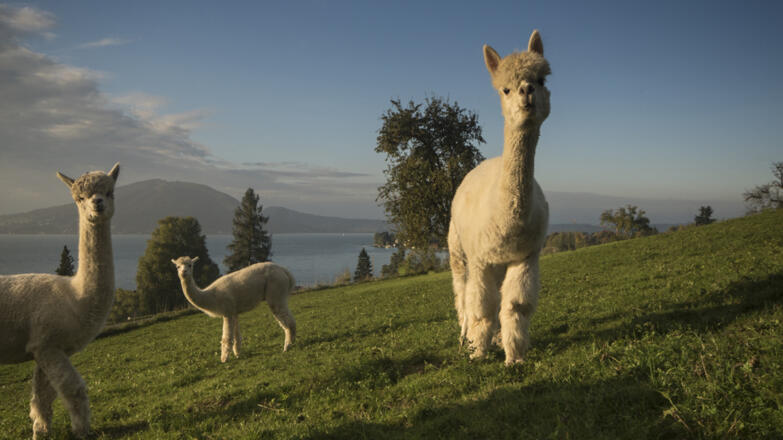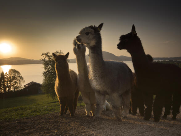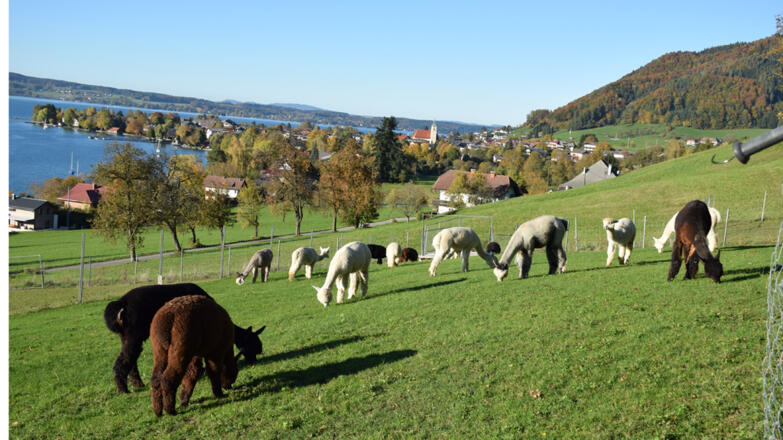 Eine kleine Herde „göttlicher Vlies-Lieferanten“, so werden Alpakas heute noch in ihrer angestammten Heimat, den südamerikanischen Anden genannt, erwartet Sie am Ostufer des Attersees.