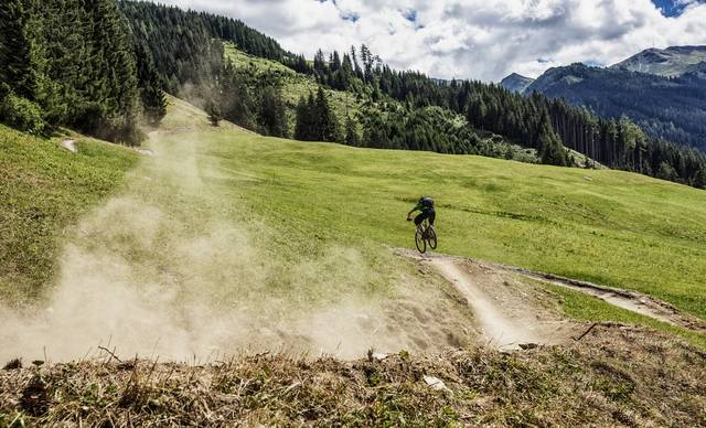 Schöner, naturbelassener Singletrail in einer schönen Bergkulisse, für Freerider wie auch CC-Fahrer geeignet.